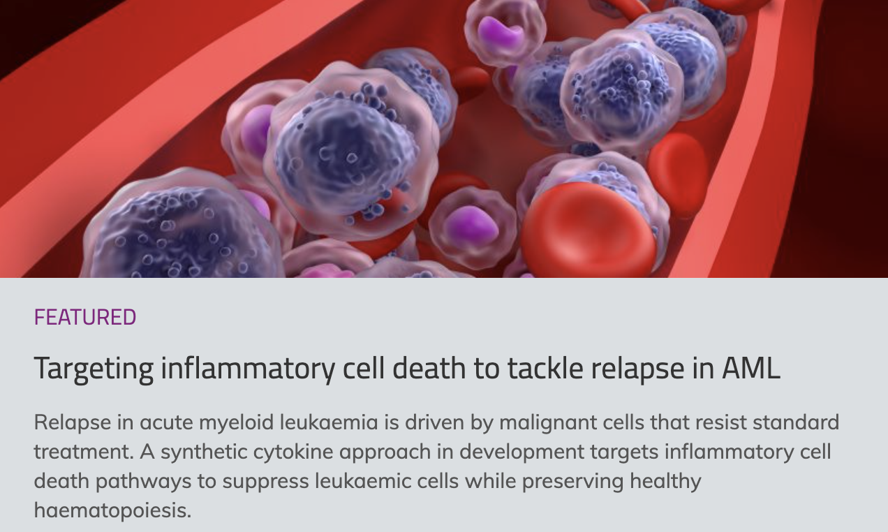 In the article “𝙏𝙖𝙧𝙜𝙚𝙩𝙞𝙣𝙜 𝙞𝙣𝙛𝙡𝙖𝙢𝙢𝙖𝙩𝙤𝙧𝙮 𝙘𝙚𝙡𝙡 𝙙𝙚𝙖𝙩𝙝 𝙩𝙤 𝙩𝙖𝙘𝙠𝙡𝙚 𝙧𝙚𝙡𝙖𝙥𝙨𝙚 𝙞𝙣 𝘼𝙈𝙇”, Prof. Jost highlights how our synthetic cytokine-based approach leverages inflammatory cell death pathways to selectively suppress leukemic stem and progenitor cells while preserving healthy hematopoiesis — a mechanistic strategy that underpins our lead therapeutic program, 𝗖𝗨𝗥-𝟭𝟬𝟭.
